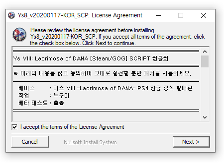 스팀에서 판매하고 있는 이스 8 라크리모사 오브 다나는 한국어를 지원하지 않습니다. 다행히 한글패치를 설치하면 한글로 게임을 즐기실 수 있습니다.