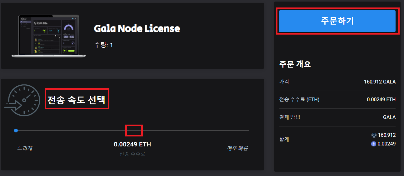 주문하기를 클릭하시면, 갈라코인이 출금되며, 갈라노드 구매가 완료됩니다 :)