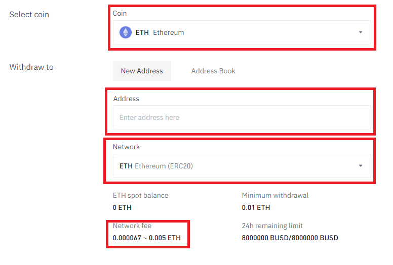바이낸스 Wallet --> Overview --> Withdraw에서 갈라게임즈 계정에서 복사한 이더리움 주소를 붙여넣기하고 잘 맞는지 확인합니다.