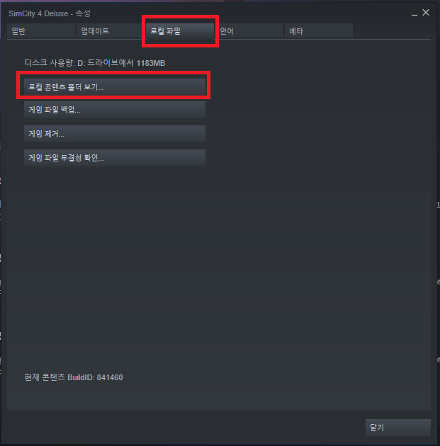 1. 스팀 라이브러리에서 심시티4 디럭스에 마우스를 가져간후, 오른쪽 클릭 --> 속성 클릭합니다.
