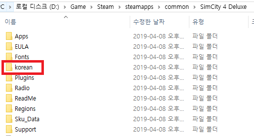 4. 새로 만든 korean 폴더에 SimCityLocale.dat 파일을 넣어줍니다.(한글패치 파일)